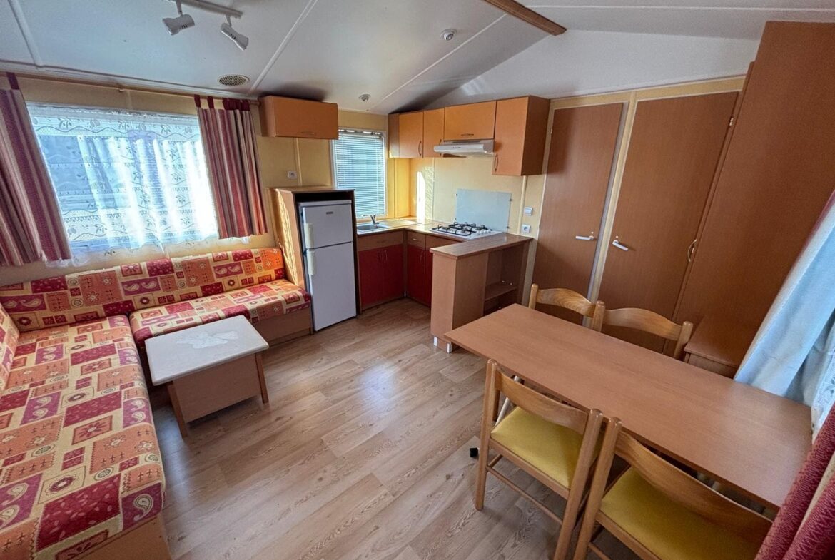 Découvrez le modèle Super Titania de la marque IRM et profitez d’un intérieur spacieux fonctionnel. Ce mobil-home d’occasion de 2004 en bon état offre tout le confort d’un mobil-home 2 chambres. Avec une cuisine équipée ouverte sur un salon central, vous pourrez profiter de vos vacances en famille ou entre amis en toute sérénité.